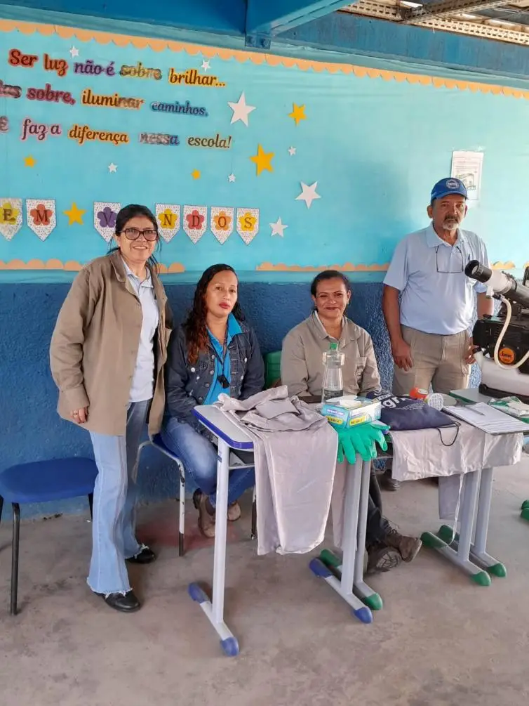 Agentes de Endemias de Cáceres apresentam EPIs e conscientizam alunos sobre combate ao Aedes aegypti. Ação educativa contribui para a prevenção de doenças e formação de cidadãos conscientes.